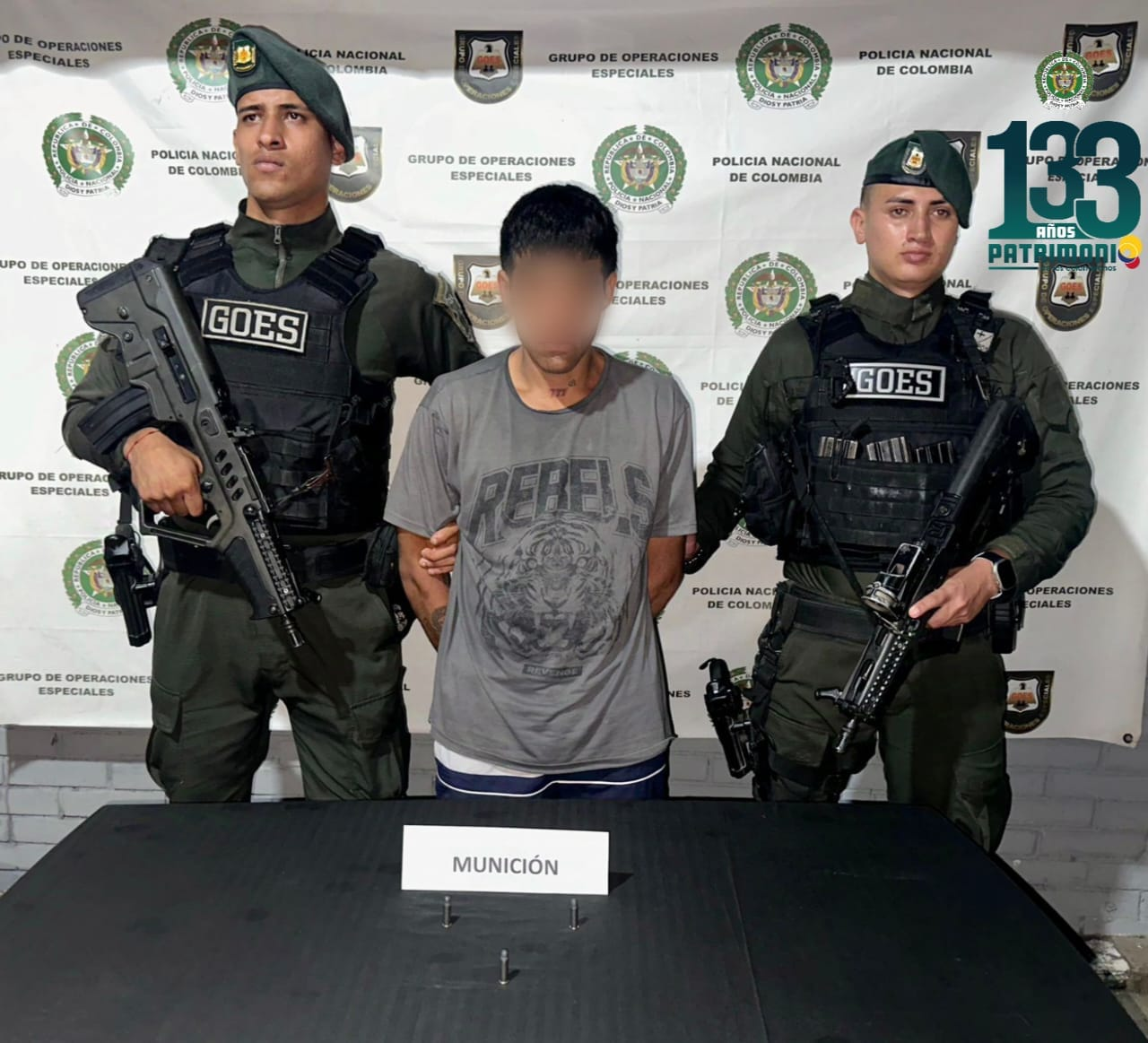 📍Girardot | Gracias a los operativos desarrollados por el Grupo de Operaciones Especiales (GOES), se logró la captura de un hombre conocido como «Piragauta», quien tenía en su poder cartuchos para arma de fuego calibre 38 sin la documentación requerida que acreditara su legalidad.